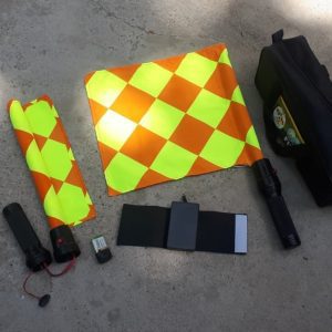 پرچم دستی به کمک داوران این امکان را می دهد تا بتوانند نشانه های مختلف مانند خطاها، آفسایدها و تعویض ها را به داور اصلی اعلام کنند. این پرچم ها باید سبک و مقاوم باشند تا در طول بازی به راحتی استفاده شوند. پرچم ویبره در داوری فوتبال یکی از ابزارهای نوینی است که به داوران کمک میکند تا در طول بازی ارتباط بهتری داشته باشند و تصمیمات خود را با دقت بیشتری اعمال کنند. این ابزار، به ویژه در بازی های بینالمللی و در شرایطی که نیاز به ارتباط سریع و دقیق بین داوران و کمکداوران وجود دارد، به کار میرود و از تکنولوژی مدرن استفاده میکند.